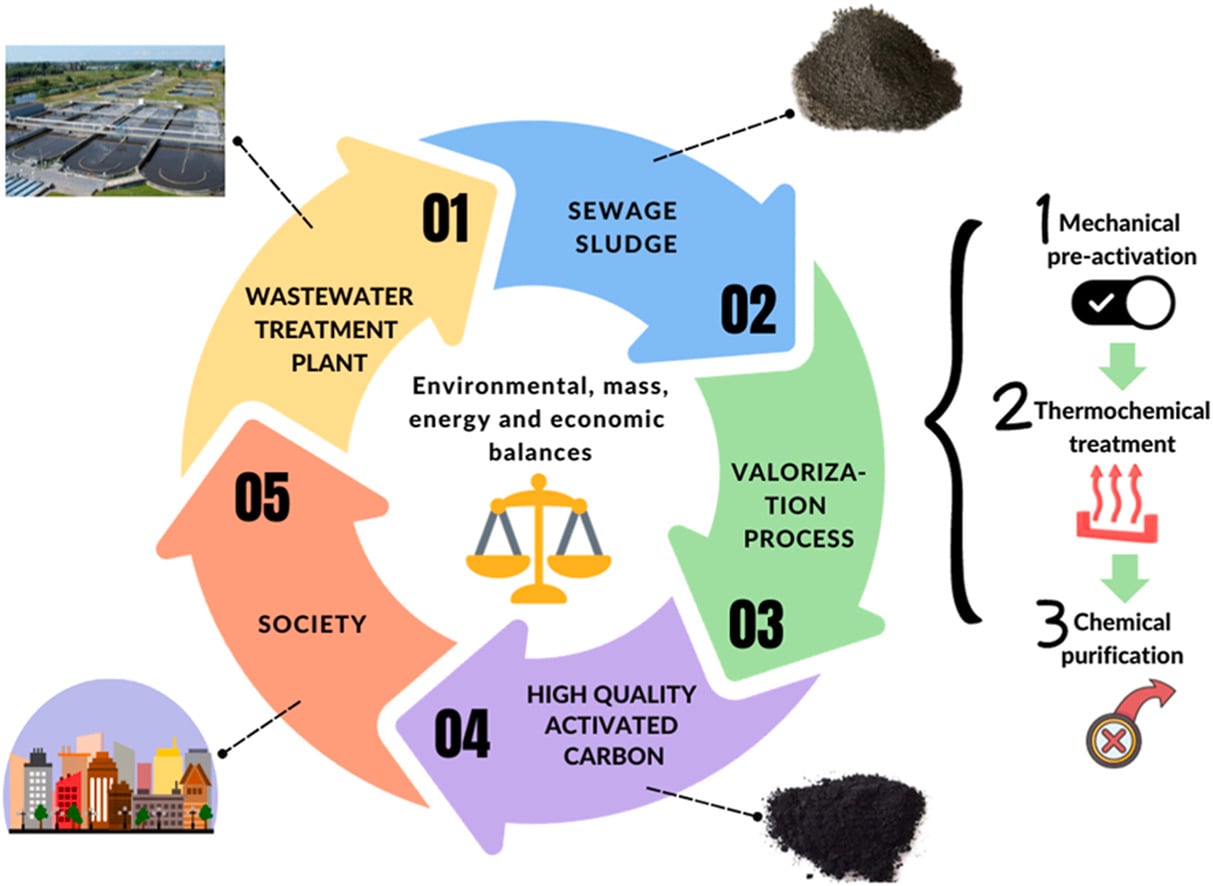 Piroliza jest interesującym zagadnieniem, które pod kątem produkcji aktywnego węgla jeszcze nie było tak intesywnie eksplorowane. Uczeni przeprowadzili szereg działań, aby z mokrej masy osadu uzyskać suchy, wysokowartościowy węgiel. Najpierw osad oczyszczono za pomocą mikroorganizmów, a potem wysuszono w piecu, pozbywając go resztek wilgoci. Następnie zmielono go na drobny proszek i zmieszano ze środkiem aktywującym.